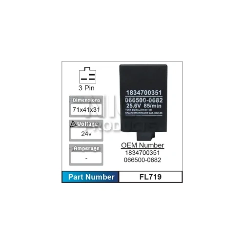 Nice FL719 Electric Flasher Unit 3 Pin 24V 1834700351 066500-0682
