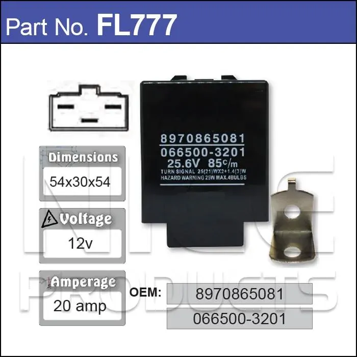 Nice FL777 Electric Flasher Unit 3 Pin 12V 20 Amp 8970865081 066500-3201