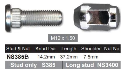 Nice NS385C Wheel Stud & Nut M12 x 1.5 for Front Holden Colorado w/ Steel Wheel