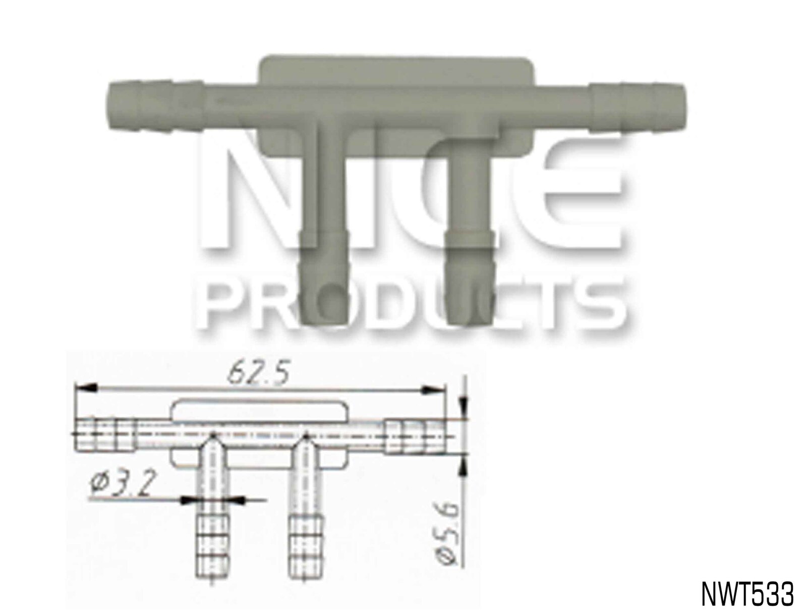 NICE NWT552 UNIVERSAL 3 WAY WASHER HOSE CONNECTOR JOINERS 5.7mm OUTLET x10
