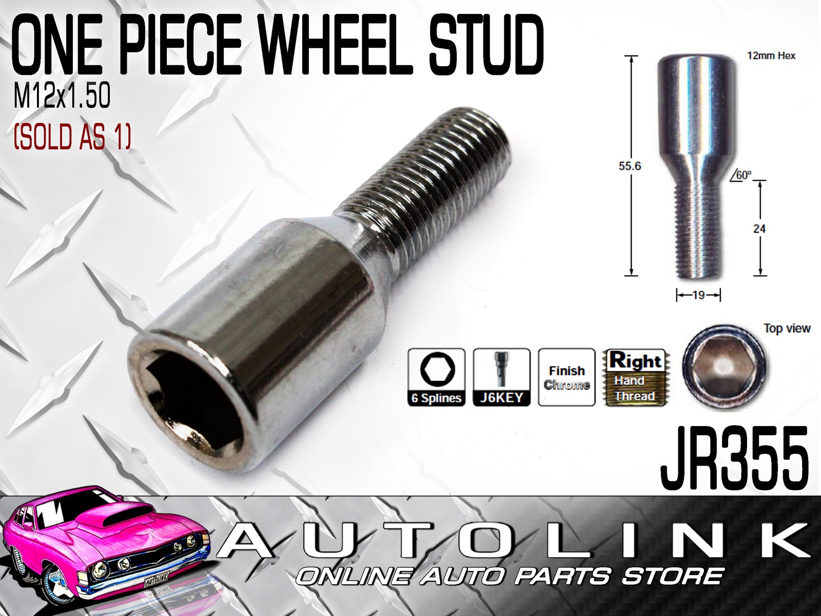 NICE JR355 ONE PIECE 6 SPLINES WHEEL STUD BOLT M12 x 1.5 SOLD AS EACH