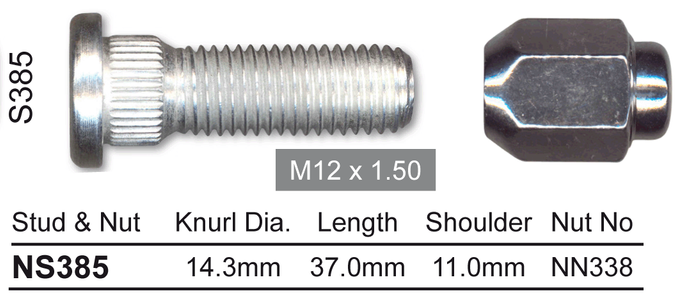 NICE NS385 WHEEL STUD & NUT FRONT FOR ISUZU DMAX WITH ALLOY WHEELS 8/2008-2013