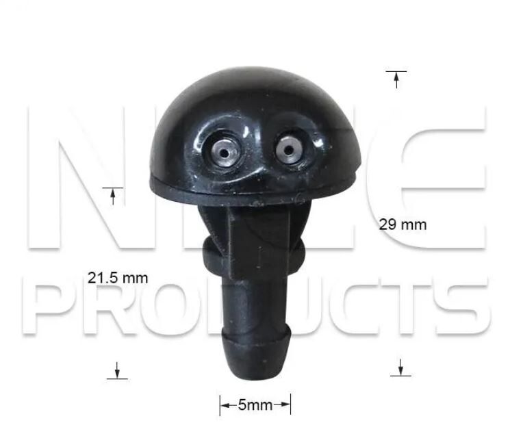 These windscreen washer nozzles use a 5mm washer hose barb. Made of black plastic.