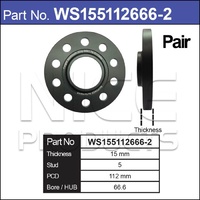 NICE WS155112666-2 FORGED ALLOY 5 STUD WHEEL SPACERS 15mm THICK x 112mm PCD PAIR