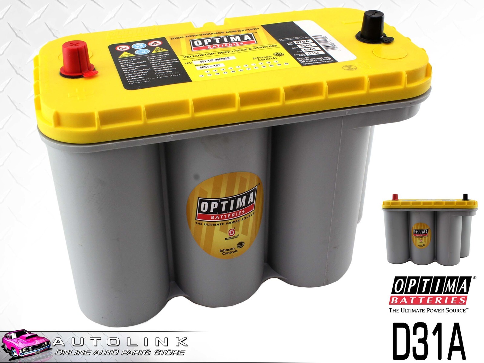 OPTIMA YELLOW TOP D31A BATTERY 12 VOLT AGM 975CCA DEEP CYCLE FOR N70ZZ AND N70Z