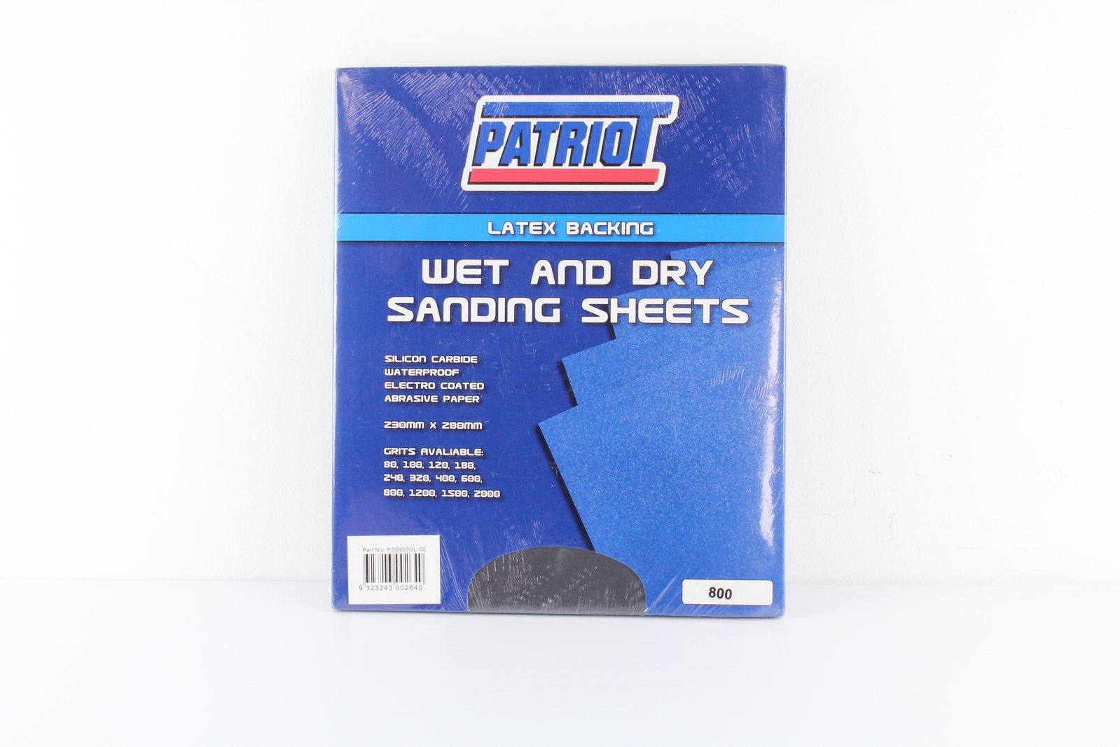 PATRIOT WET & DRY SANDING SHEETS - 800 GRIT 230mm x 280mm PACK OF 50 SHEETS
