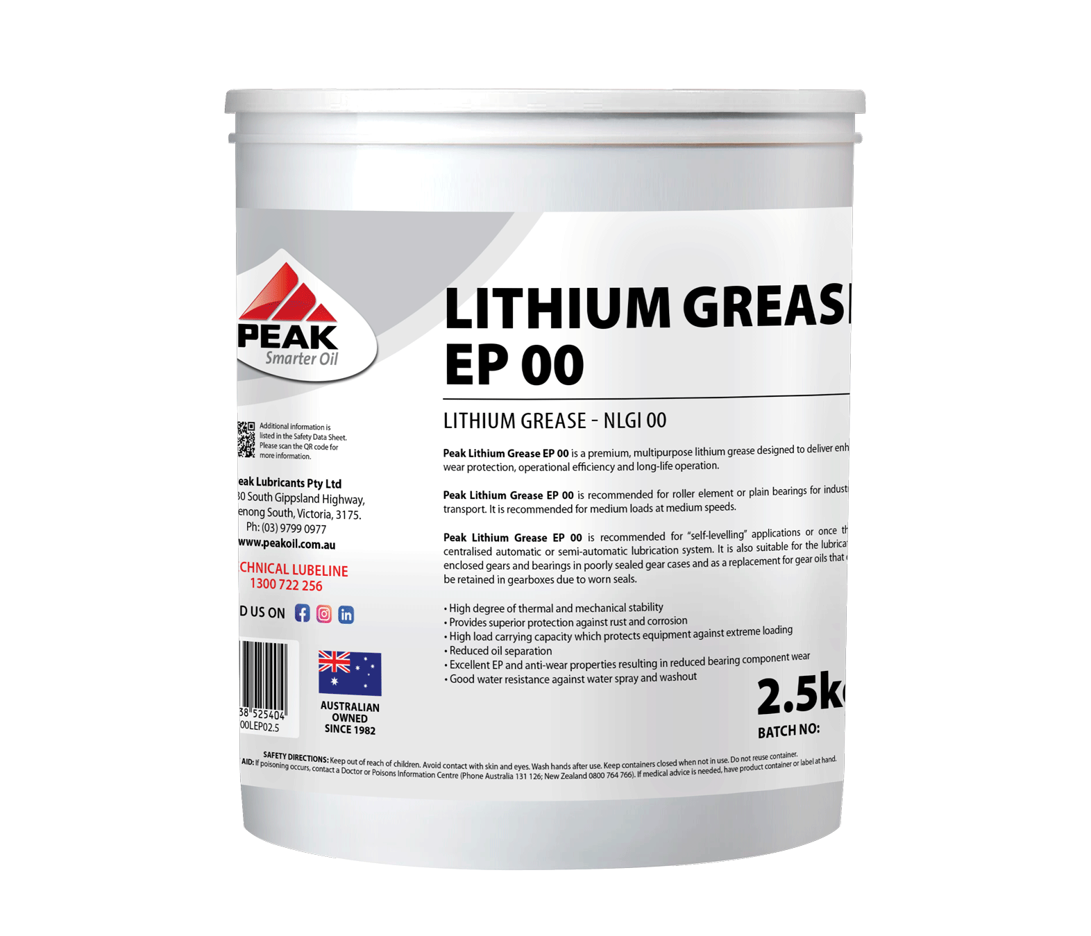 PEAK LITHIUM GREASE EP 00 is a premium, multipurpose lithium grease designed to deliver enhanced wear protection, operational efficiency and long-life operation.