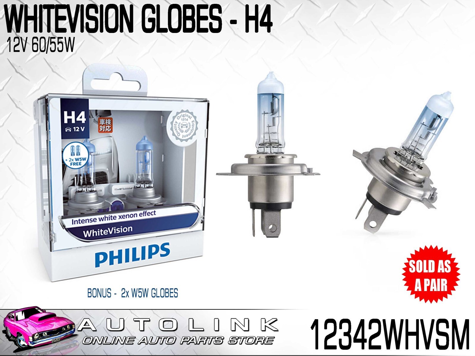 Philips 12342WHVSM White Vision H4 12V 60/55W Headlight Globes Twin Pack