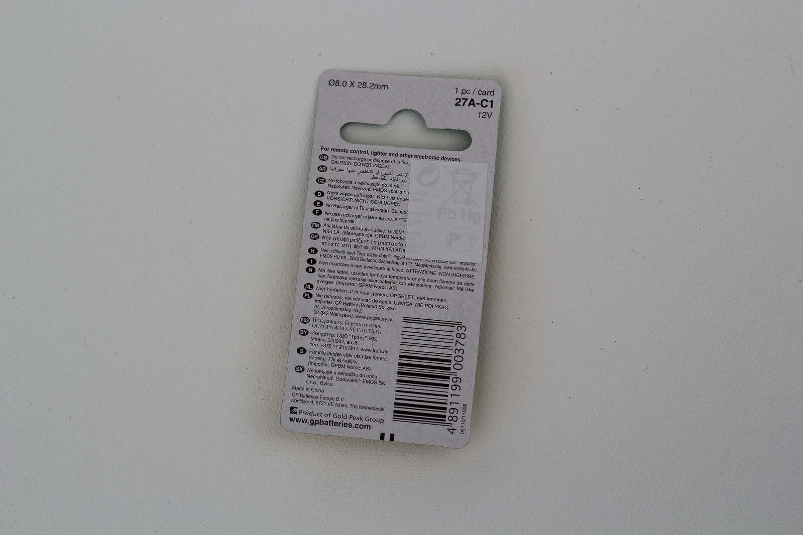 POWER CELL GP27A SUPER ALKALINE BATTERY IS A 7.7mm x 28mm IN A 12 VOLT 18 MAH IT WILL FIT ANYWHERE THE 27A SIZE IS REQUIRED