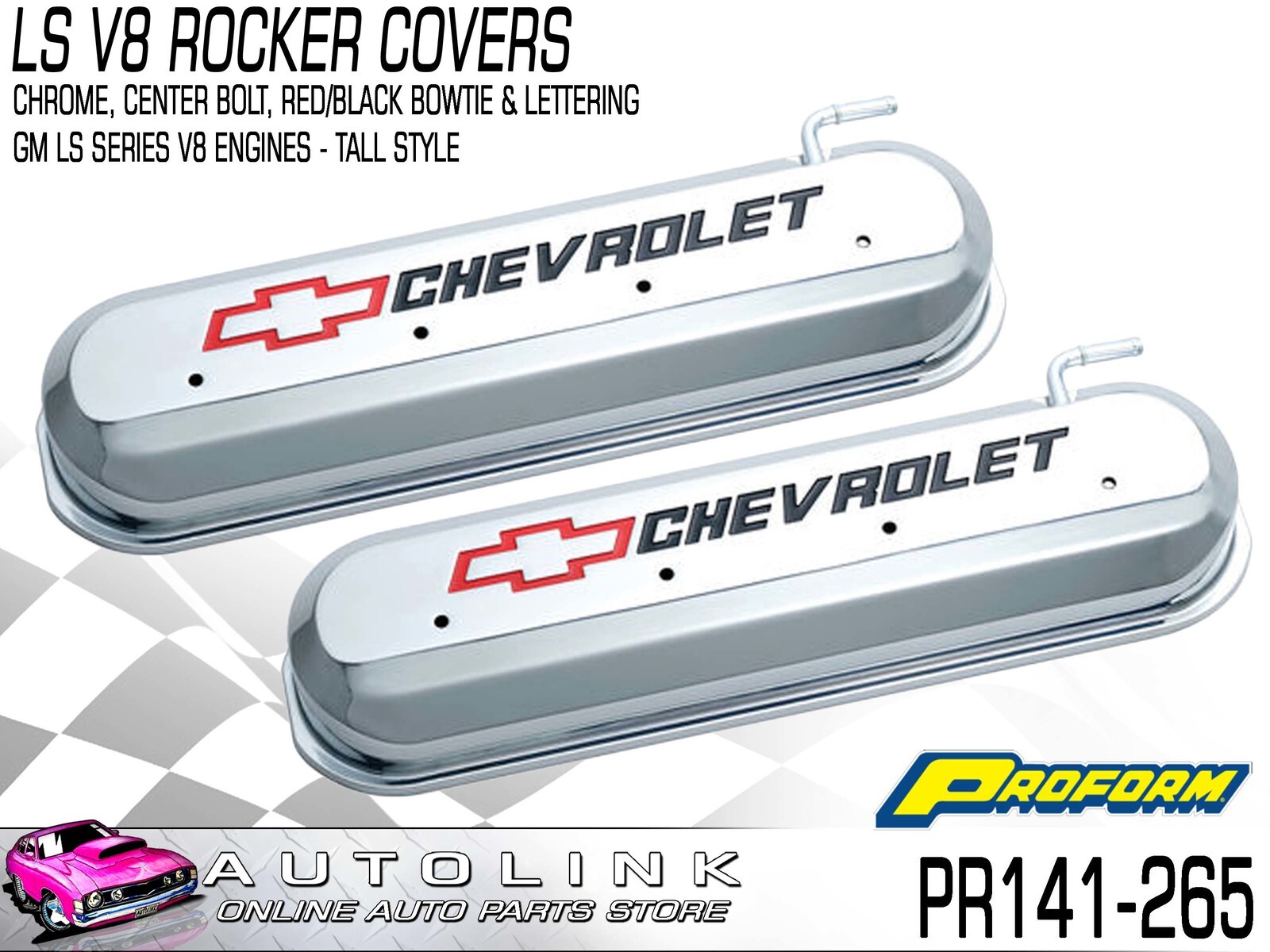 Proform Cast Aluminium Valve Covers Chrome with Logo for Chev LS V8 PR141-265