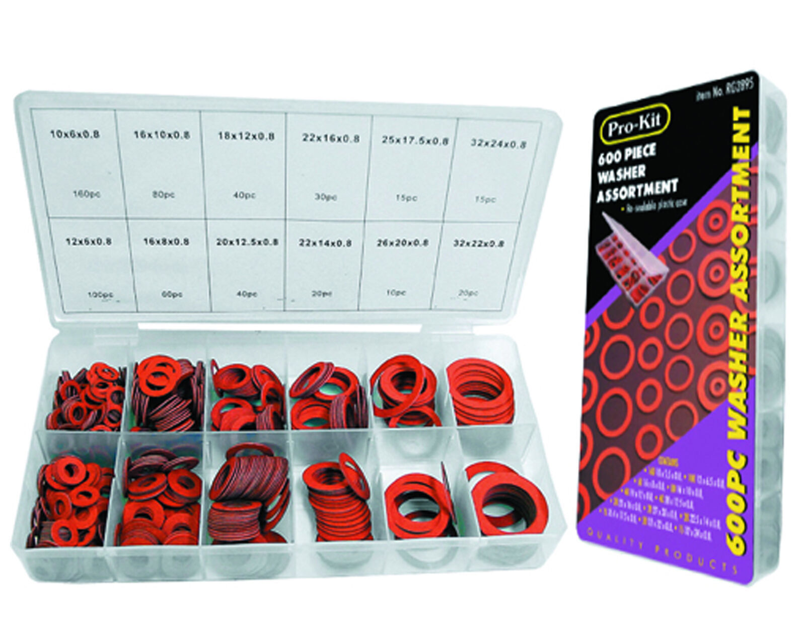 RUBBER & FIBRE WASHER ASSORTMENT - 600 PIECE METRIC SET IN RESEALABLE CASE