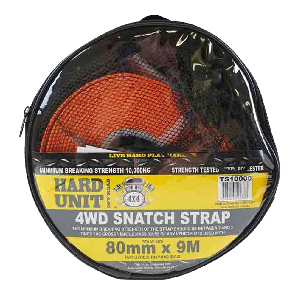 This 4WD recovery snatch strap is a must have for all 4wd vehicle made from 100% polyester, genuine stretch, reinforced & protected eyes. Includes one zip-up carry bag & one weave drying bag and complies with consumer product safety standards.