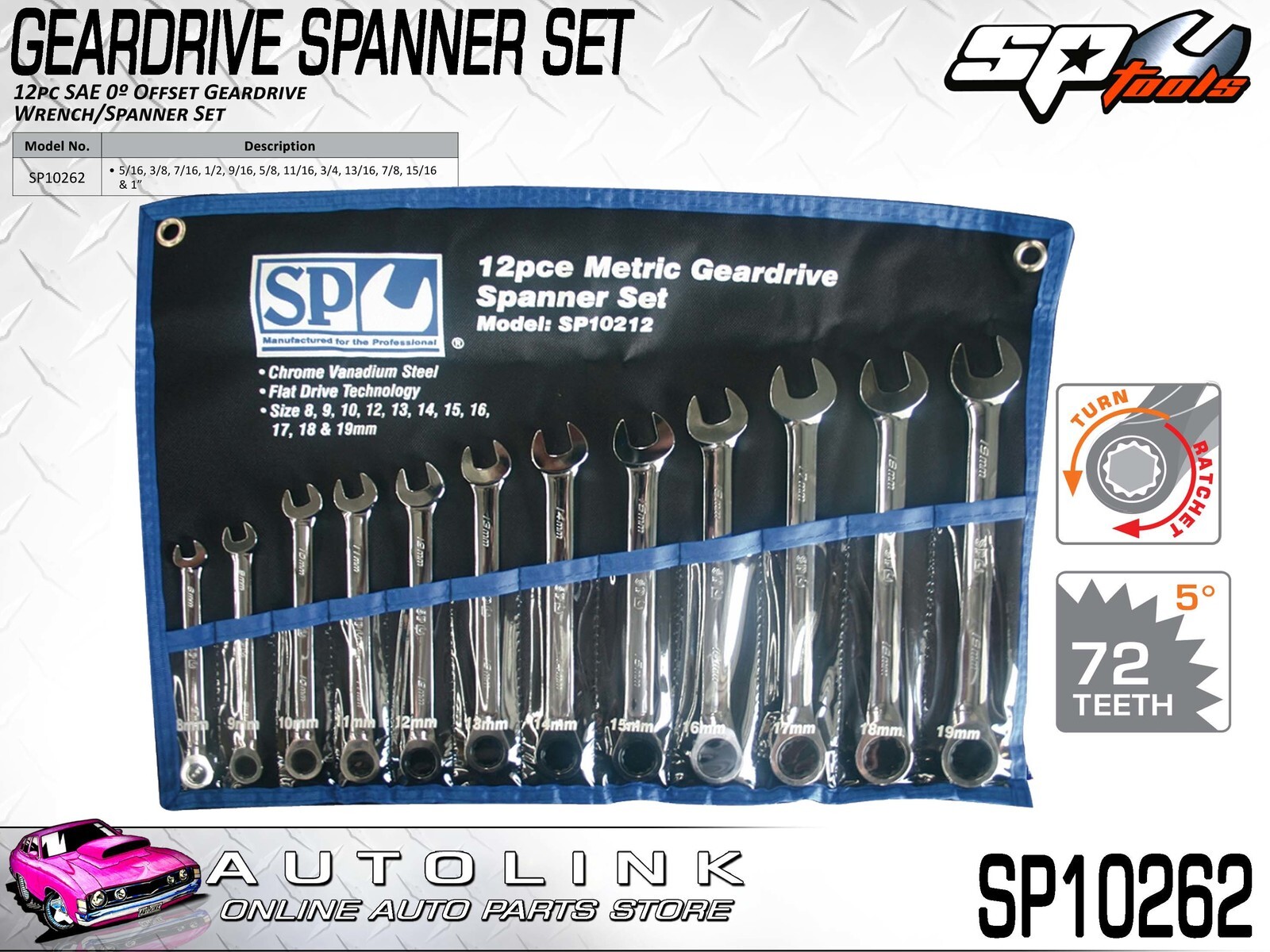 SP TOOLS 12PC SAE 0° OFFSET GEARDRIVE SPANNER SET WITH CARRY POUCH ( SP10262 )