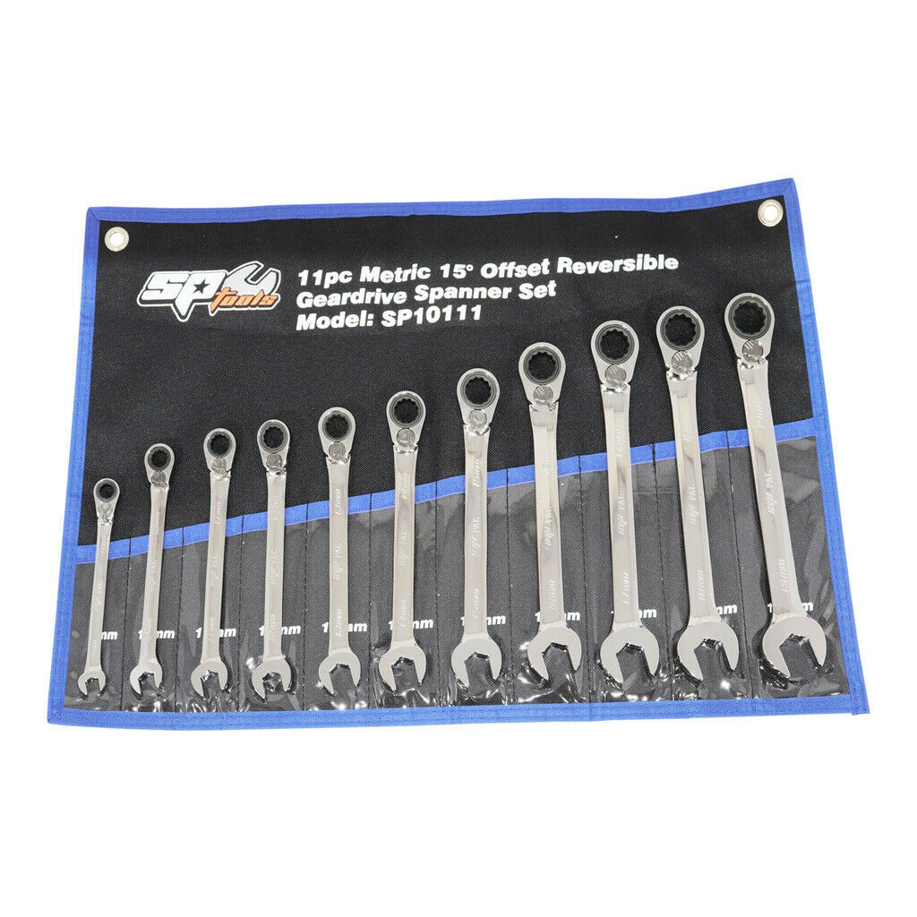 SP TOOLS METRIC 15° 11PC OFFSET REVERSIBLE GEARDRIVE WRENCH SPANNER SET SP10111