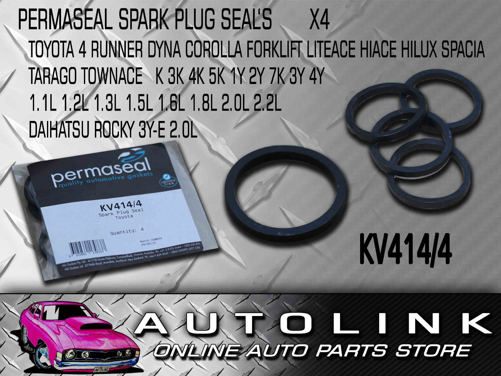 This Permaseal Spark Plug Seals is to suit Toyota and Daihatsu K 3K 5K 7K 1Y 2Y 3Y 3Y-E & 4Y engines.