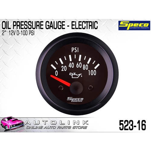 SPECO STREET 2" OIL PRESSURE ELECTRICAL GAUGE 1-100 PSI 12V HALF SWEEP 523-16