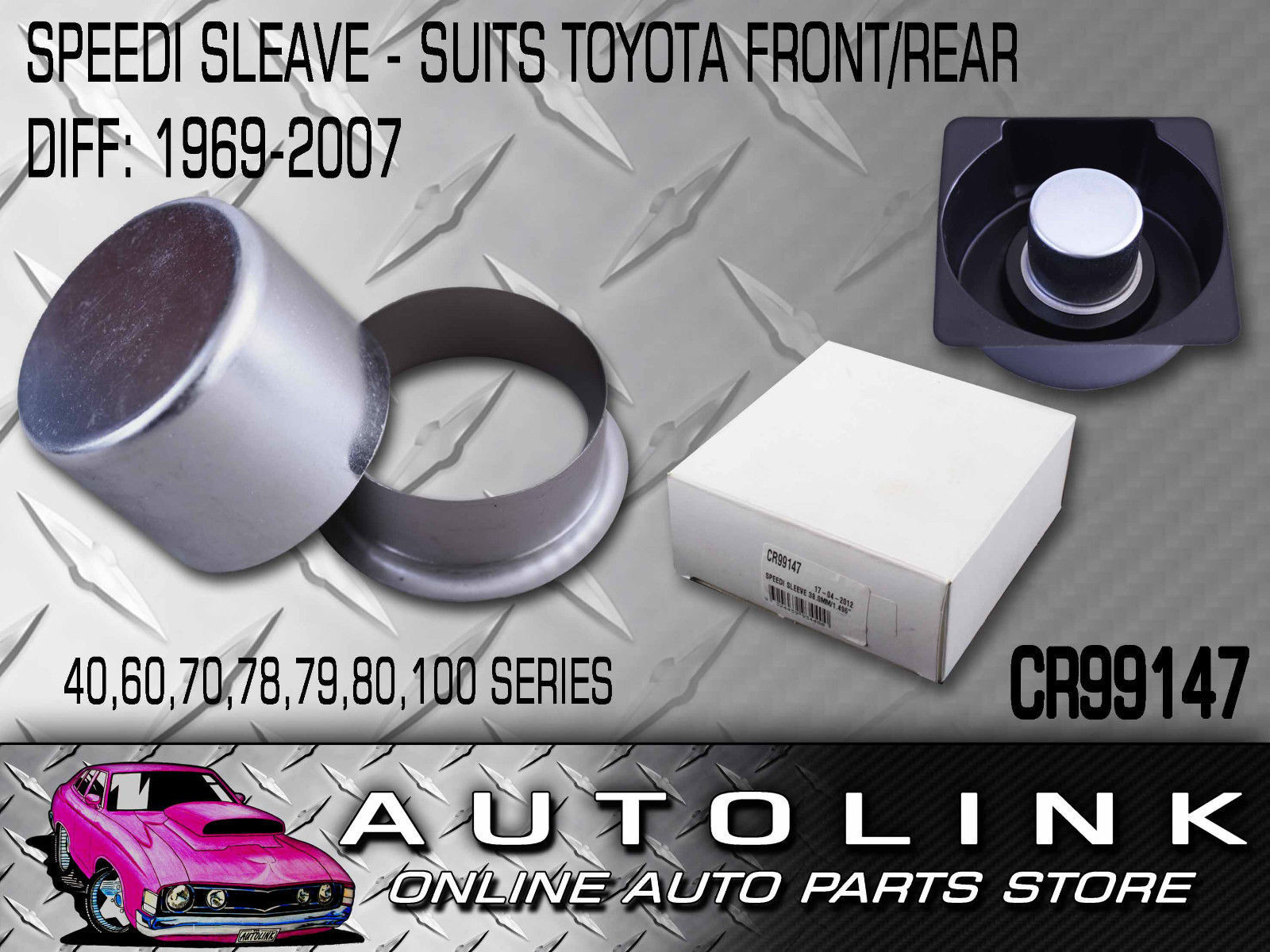 This Speedi Sleave is for Diff Pinion Oil Seal is to suit Front & Rear diff's on some models; Speedi Sleeve fits over a worn shaft fixing oil leaks & saving you the cost of replacing the shaft. The manufacturer is Toyota suit the following models.