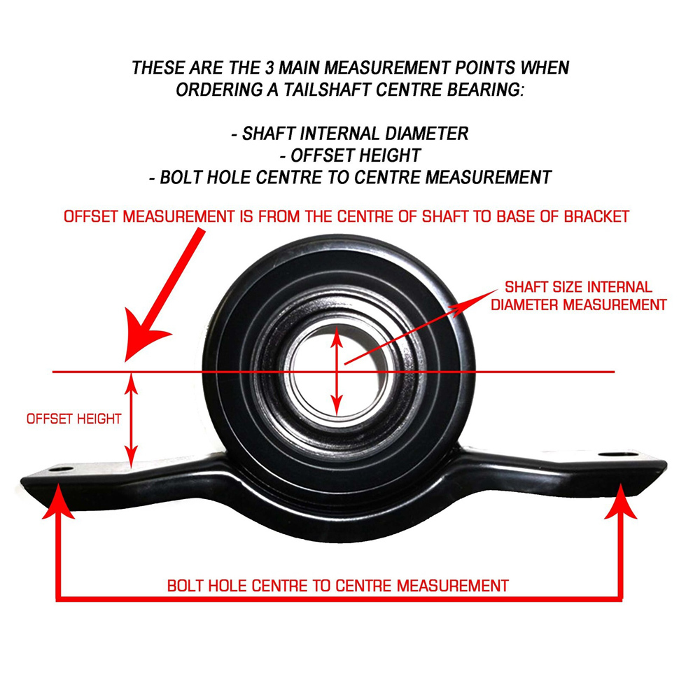 - Pursuit, Super Pursuit FG II 5.0L Coyote 315 DOHC-PB 32v Supercharged MPFI V8 315kW 6sp Man 2dr Utility RWD [12/2011-12/2014] TailShaft Centre Bearing 1 30mm ID with 170mm Bolt Centres Uni Joint. 25mm Offset Height