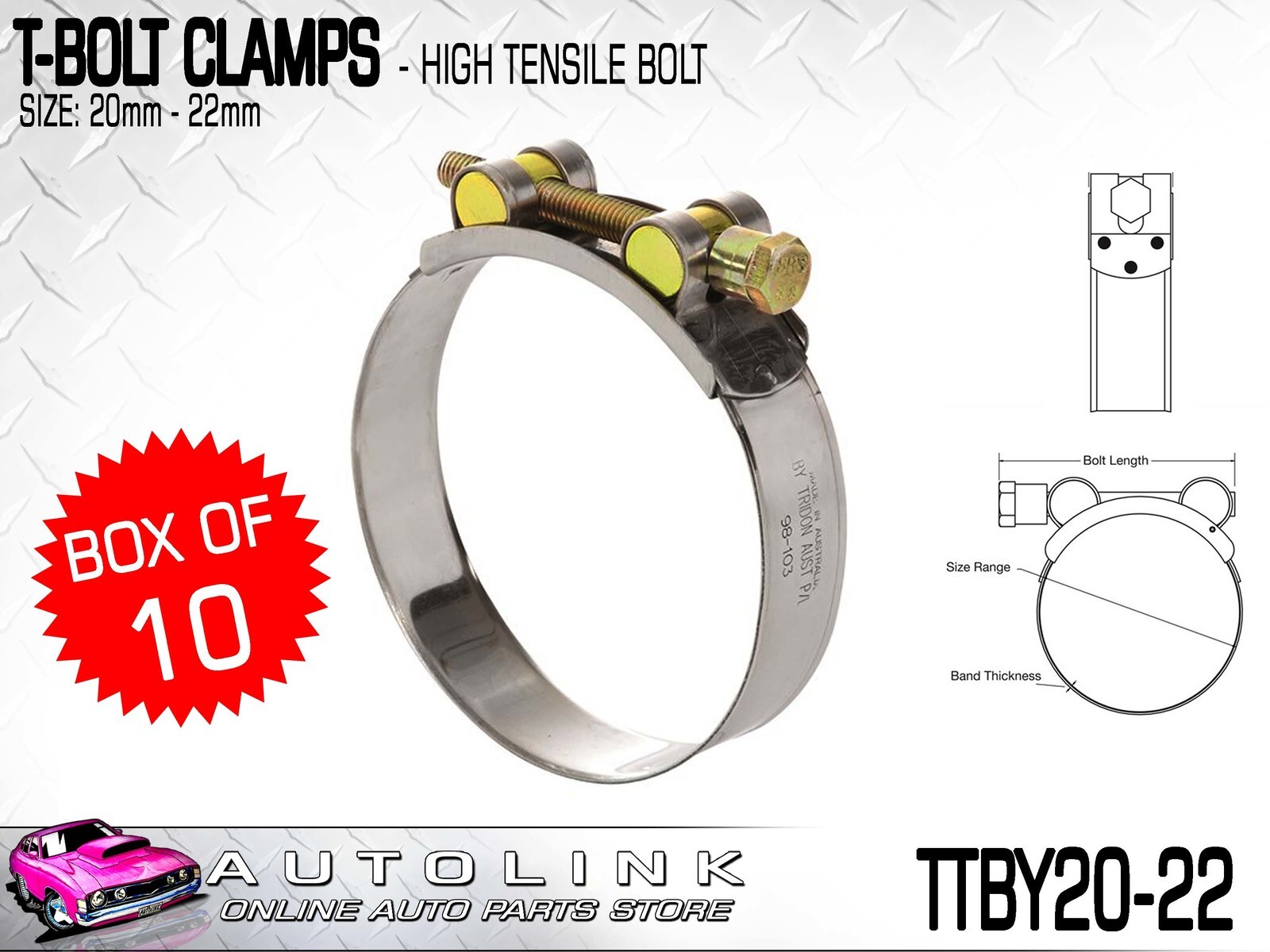 TRIDON T BOLT HOSE CLAMPS 20-22mm FOR TURBO PIPE & INTERCOOLER TTBY20-22 x10