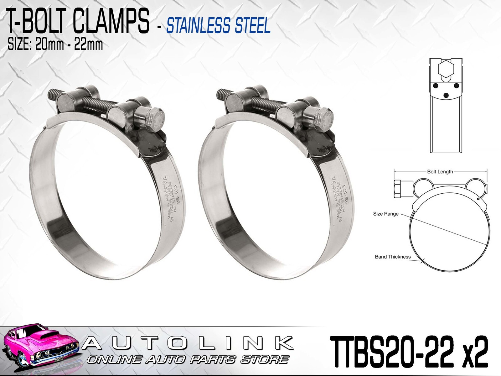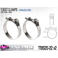 TRIDON T BOLT HOSE CLAMPS - ALL STAINLESS STEEL 20-22mm TTBS20-22 x2