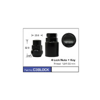 BLACK WHEEL LOCK NUT SET M12 x 1.50 THREAD 60° TAPER SET OF 4 WITH KEY C3BLOCK