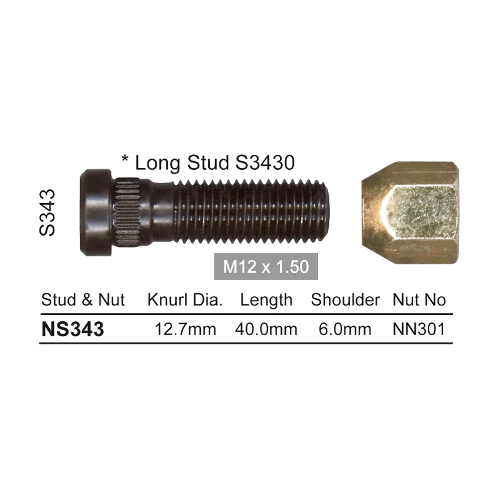 Nice NS333 Wheel Stud & Nut M12 x 1.5 for Toyota Landcruiser 60 & 70 Series
